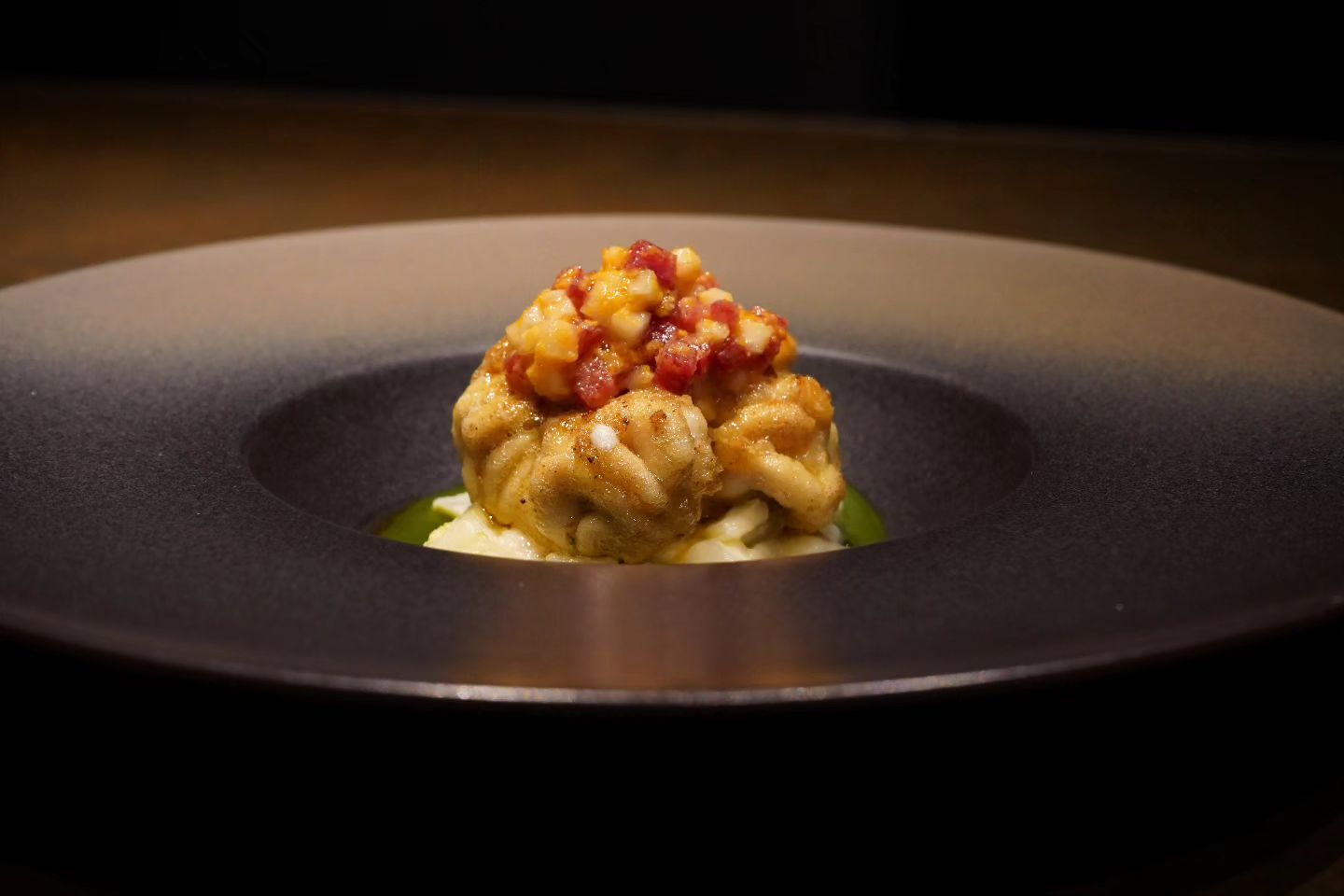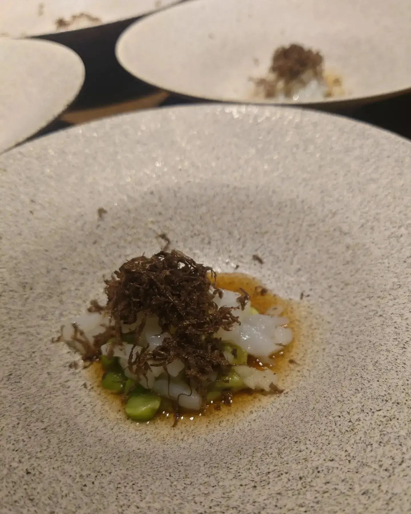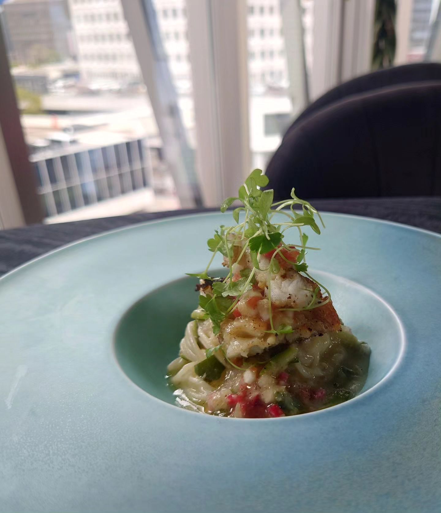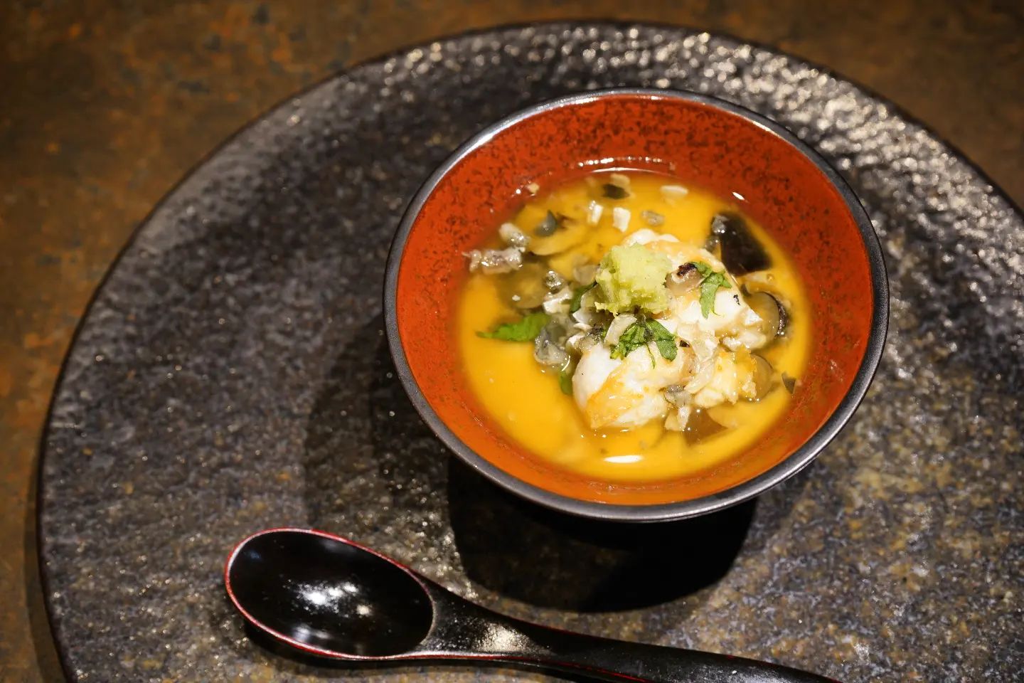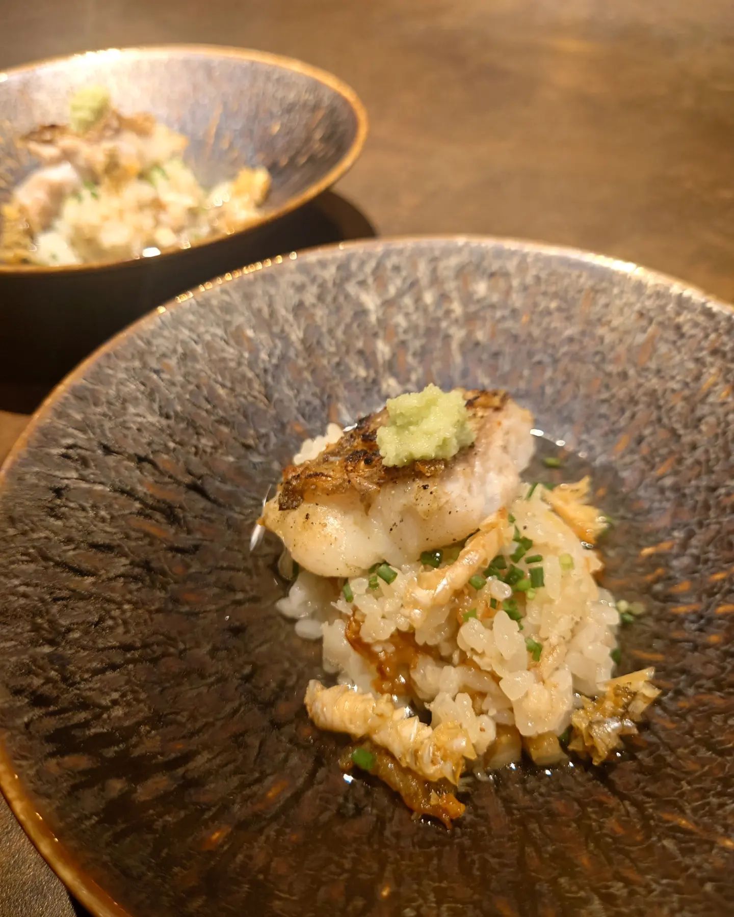 香ばしく炭焼きした旬のクエと組み合わせたのは