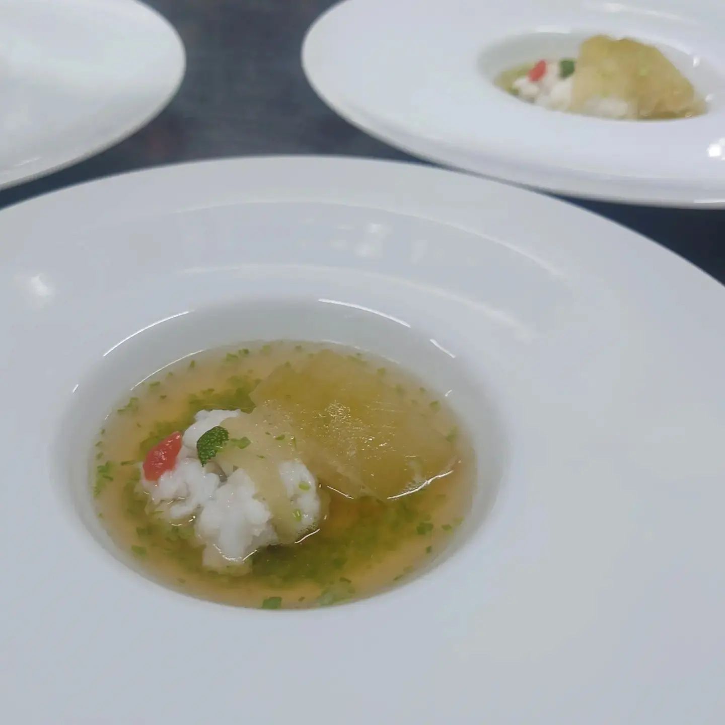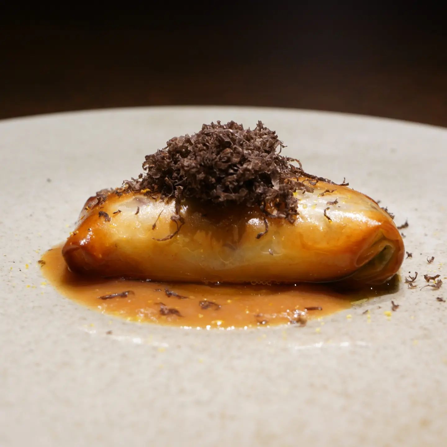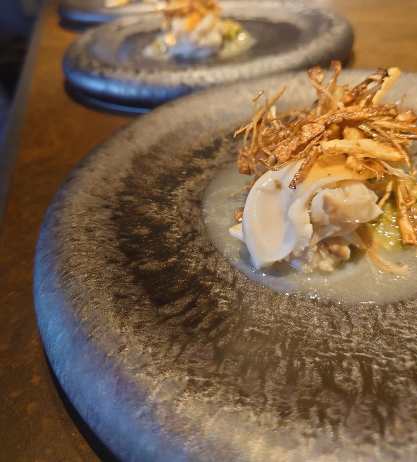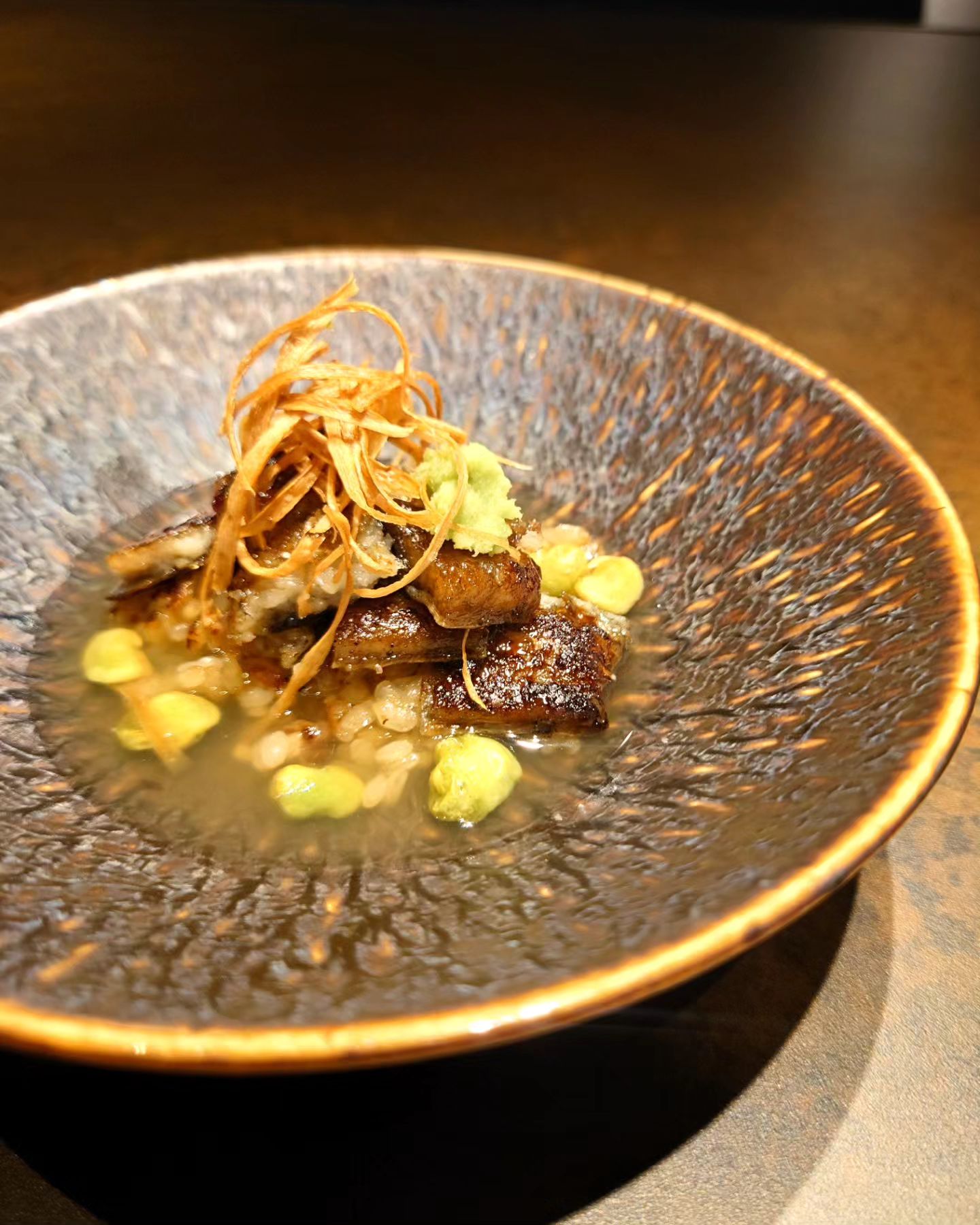 香ばしく炭焼きした旬のクエと組み合わせたのは