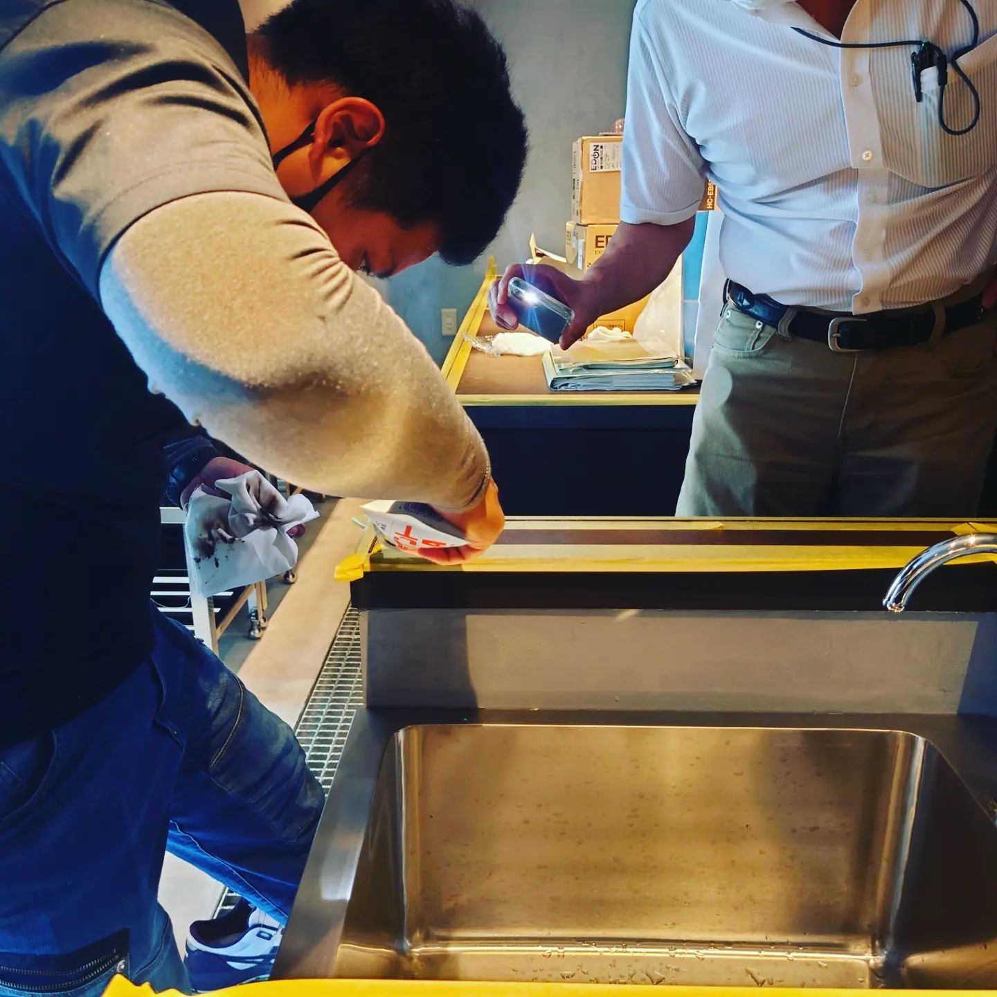 フルフラットカウンターで仕上がっていくお料理を見ながら、